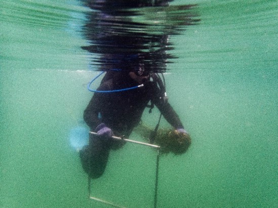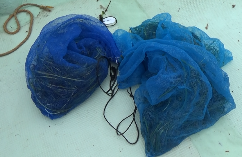 そのあと50㎝×50㎝の坪刈りを行い、アマモの密度を出していきます。