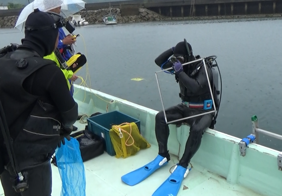 吸収量算出のため、アマモ場の面積と密度の調査をします。