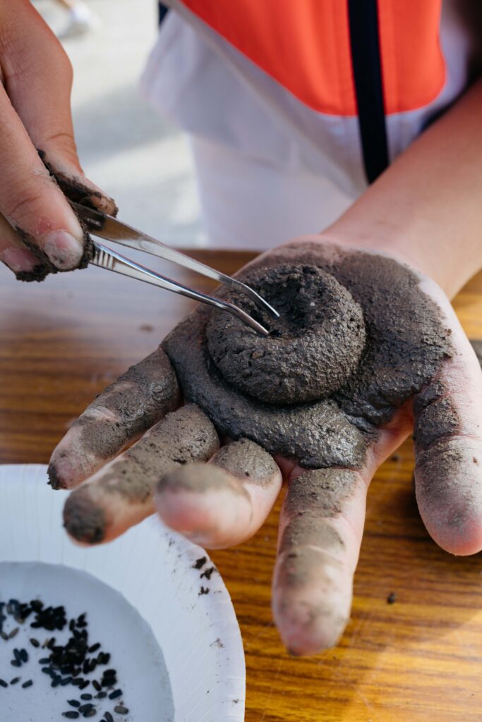 大島中学校1年生による幸港のアマモ保全事業 種取り