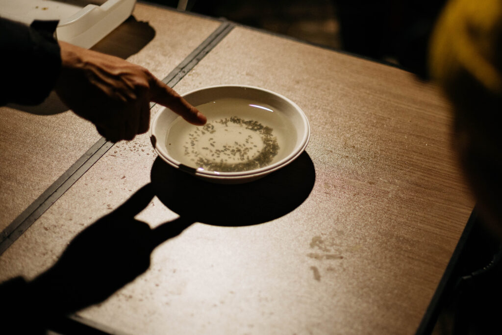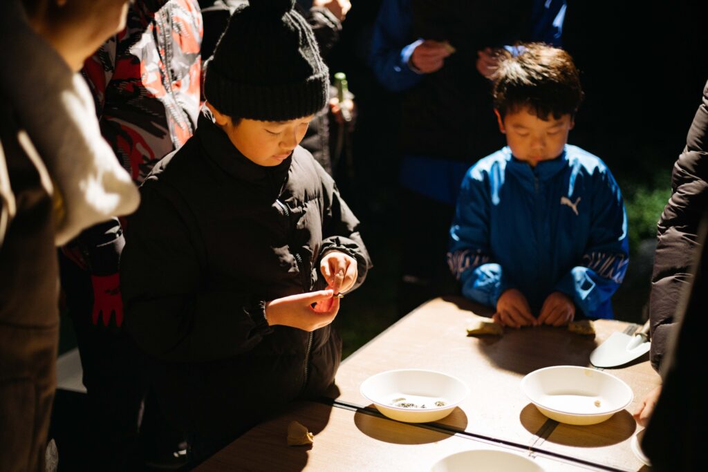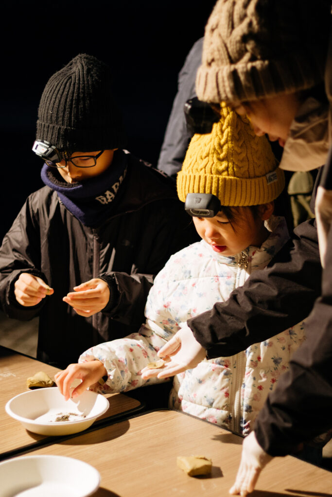 種を土に含み、小さな団子を作ります。直に種を巻くと浮いてしまう恐れがあるので小さな団子にします。